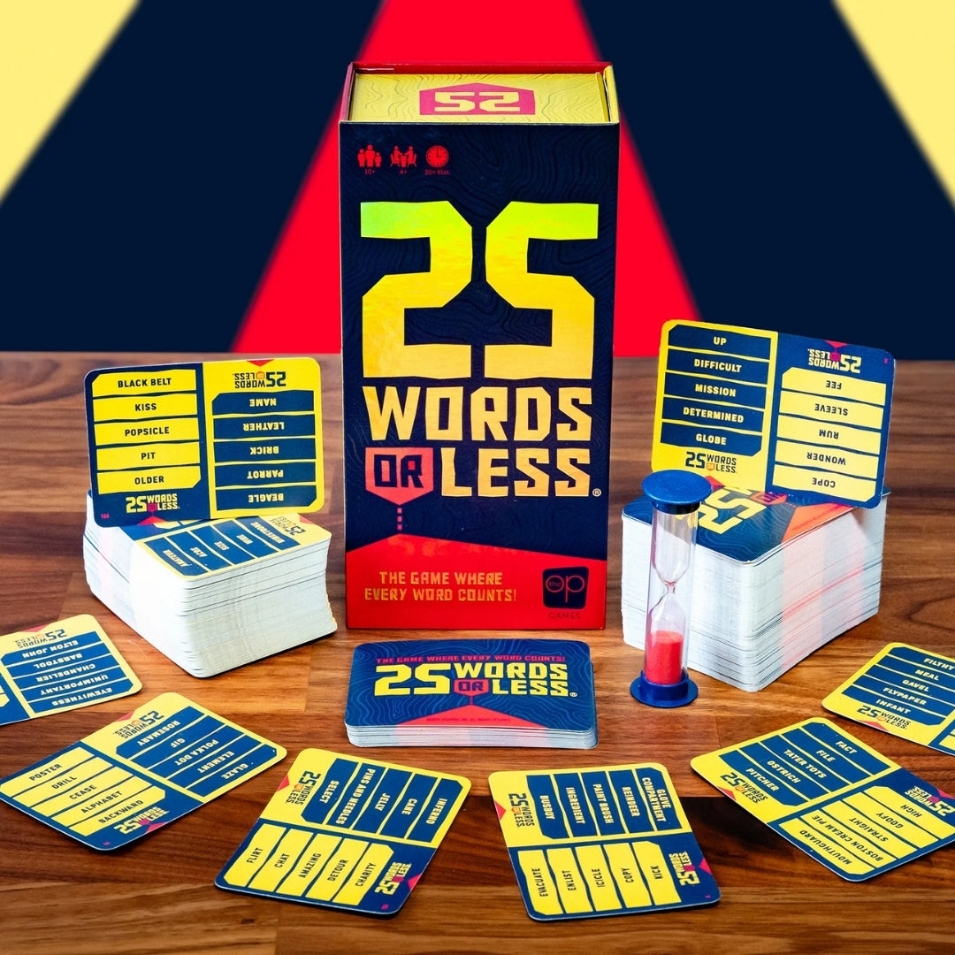 In this fast-paced party game, two clue-givers bet on how few words they’ll need to have their teammate(s) guess five secret answers, starting at 25. The lowest bidder takes the card and must beat the challenge within their limited clues--and time! Every word counts in this energy-fueled board game that keeps family and friends on the edge of their seats!