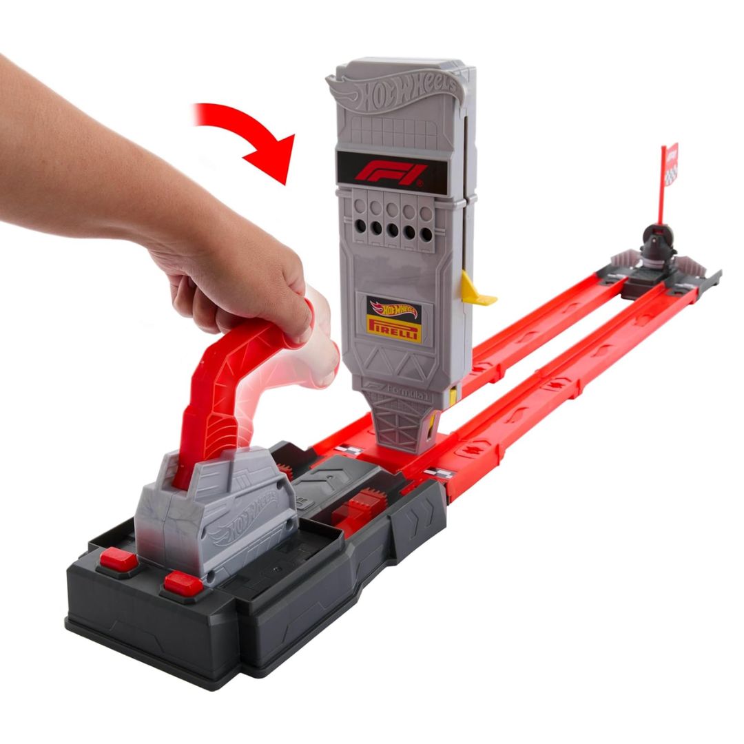 Take on the spirit of real-life F1 racers with the Hot Wheels Racing Formula 1 Grid Start Track Set.