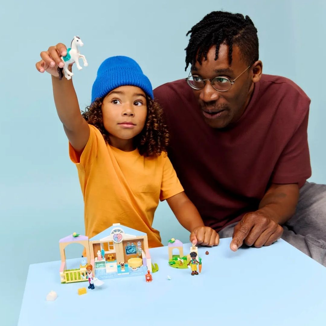 - CARE FOR THE PETS – The LEGO® Friends Animal Vet Clinic (42696) has everything kids need to tell animal care stories, including a toy horse stable, an examination room, a pet playground and more