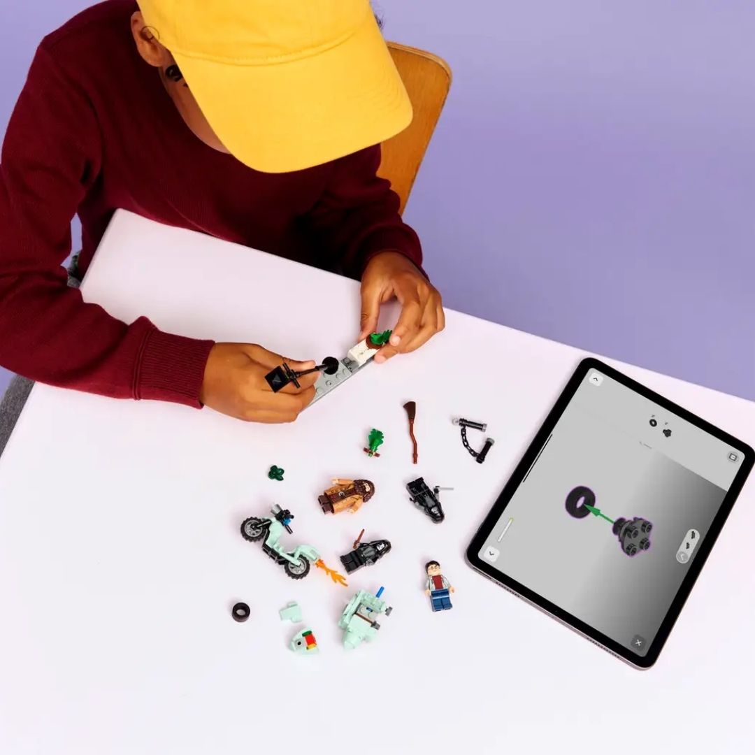 Relive Hagrid™ & Harry’s Privet Drive escape from the Death Eaters in Harry Potter and the Deathly Hallows™ with this LEGO® Harry Potter™ motorcycle toy (76459) for kids. This magical building set makes a fun small gift for boys, girls and any fans ages 8 years old and up on their birthdays. It features the first minifigure-scale LEGO model of Hagrid’s flying motorcycle, 4 LEGO Harry Potter minifigures and a Privet Drive mini build scene to inspire creative play. Place the Rubeus Hagrid minifigure on the motorcycle and Harry Potter in the sidecar. Pose the 2 Death Eater minifigures on the Privet Drive scene, which features a lamppost and a planter of flowerpots that is designed to be flipped over during the heroes’ daring escape. Kids can build with confidence using the LEGO Builder app. It lets them zoom, rotate in 3D and track their progress with easy-to-follow digital instructions. Set contains 124 pieces.