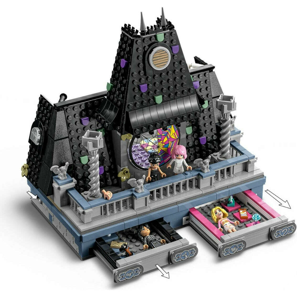Nevermore Academy set – The school playset includes a buildable dorm room with a spiderweb window that opens, a base with buttons that open secret drawers and a balcony with 4 gargoyles