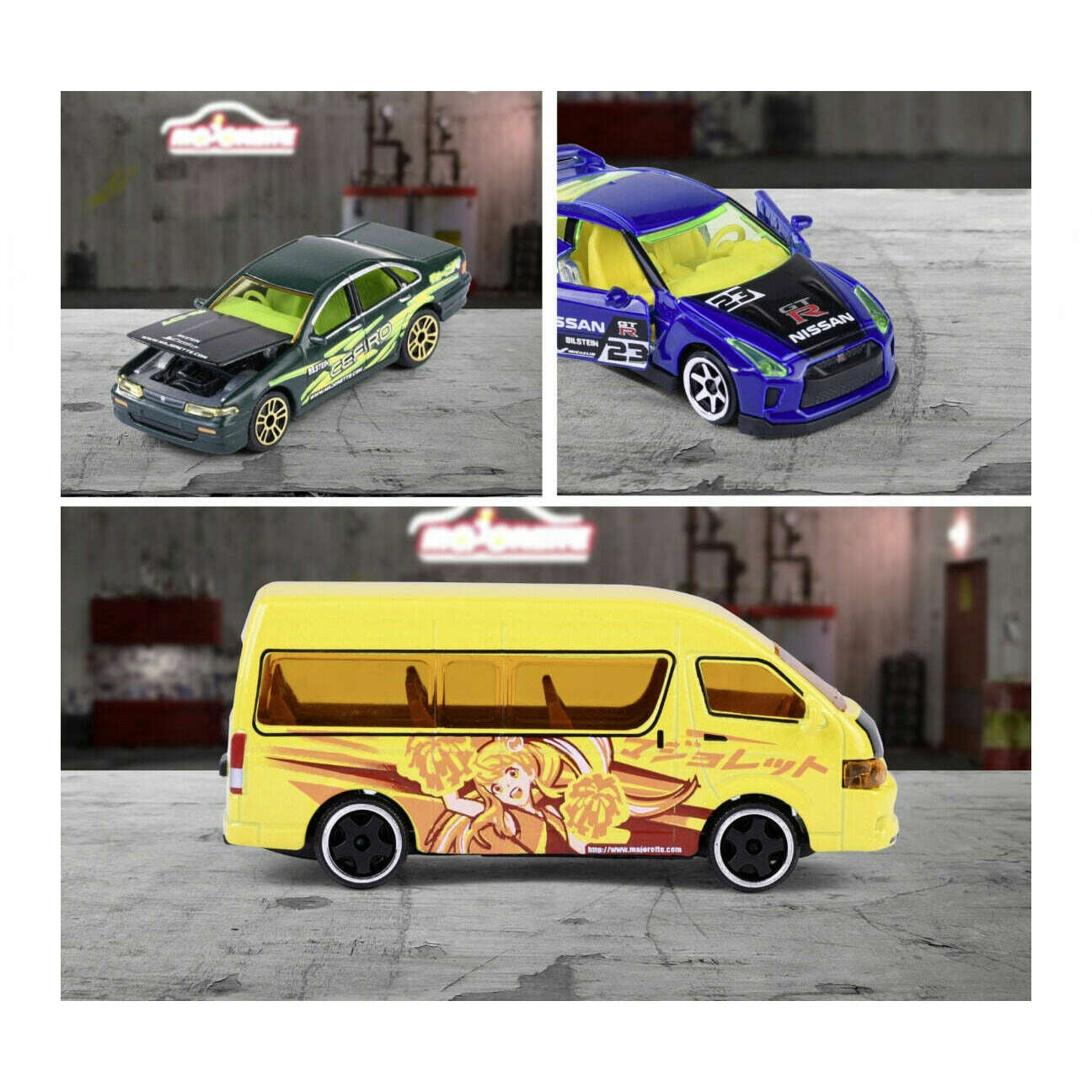 Extravagant designs and bright colors: these model vehicles are a tribute to Japanese pop culture! Each vehicle has a multicolored design and comes with a cool accessory and removable tuning part – a must-have for kids and collectors!
