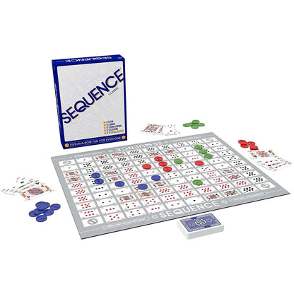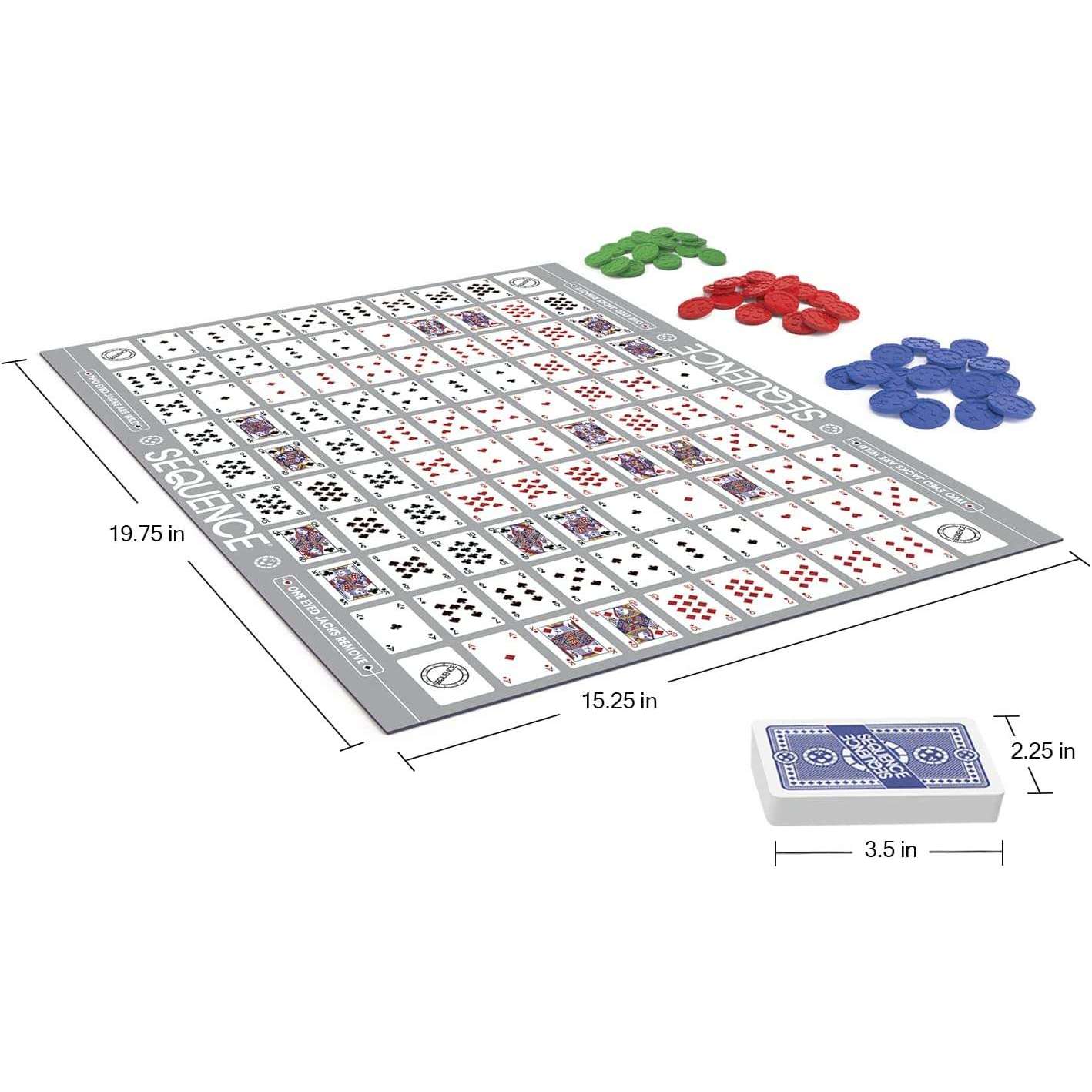 It's fun, it's challenging, it's exciting, it's SEQUENCE! Play a card from your hand, and place a chip on a corresponding space on the game board. When you have five in a row, it's a SEQUENCE. Learn to block your opponents or remove their chips, and watch out for the Jacks - they're wild! With a little strategy and luck, you'll be a winner.