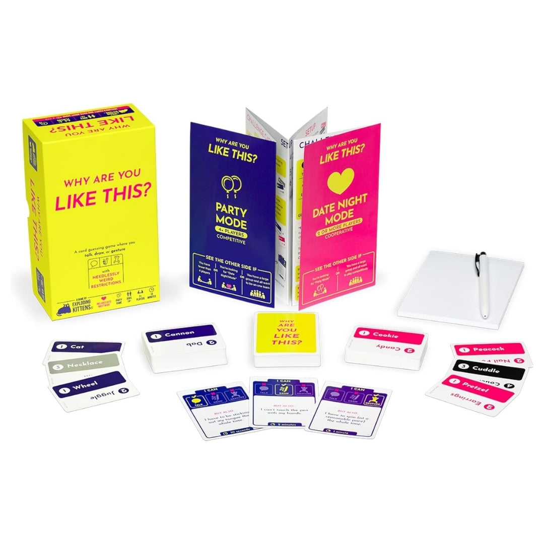 The goal is to get your team to guess as many secret words as possible before the timer runs out. To do this you can either talk, draw, or gesture. But there’s a catch! Each card also comes with an added twist to make your job a little harder–and more ludicrously entertaining. This game gets everyone out of their comfort zones and into a silly mood. It’s perfect for parties, team building events, and rollicking game nights.